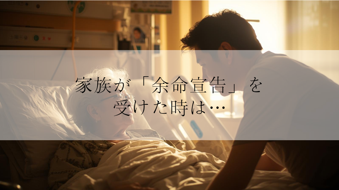 医師から大切な方の余命について告げられたら、誰でも大きなショックを受けて当たり前です。ただ、この「余命宣告」は患者さんの病状を基本に、病気生存率や治療期間などの統計データ、個々の症例など医師の経験値から導き出された生存期間に関する「予測」で、必ずしも正確とは言い切れないものです。楽観視はできませんが、希望は残しておきましょう。